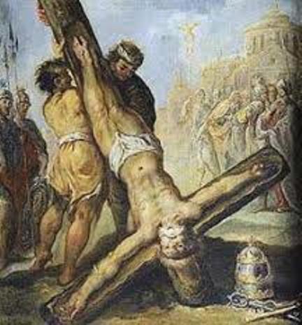 “Y al fin, después de haber venido a Roma, fue crucificado cabeza abajo, porque él había pedido que él pudiera sufrir de esta manera” Orígenes