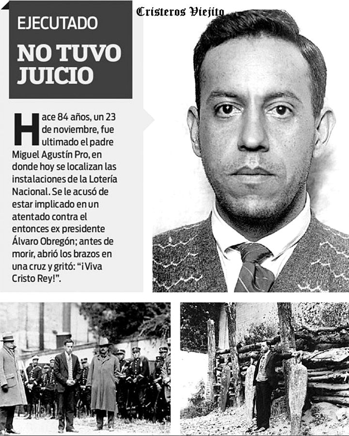 Al momento de ser fusilado, el padre Pro extendió los brazos en cruz. Tenía el Rosario en una mano y el Crucifijo en la otra. Exclamó: «¡Viva Cristo Rey!». Esas fueron sus últimas palabras. Los soldados dispararon y así acabaron con la vida de un santo sacerdote que aun a costa de los riesgos que eso significaba, llevó el evangelio a quien lo necesitaba.