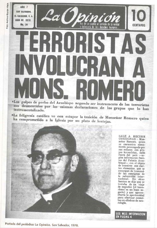 “Monseñor Romero dirige grupo terrorista” , “Arzobispo, gran aliado de los agentes de la subversión”