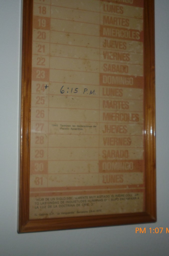Calendario del año 1980, en la casita de monseñor Romero, hoy museo, el cual indica el día y la hora en que fue asesinado