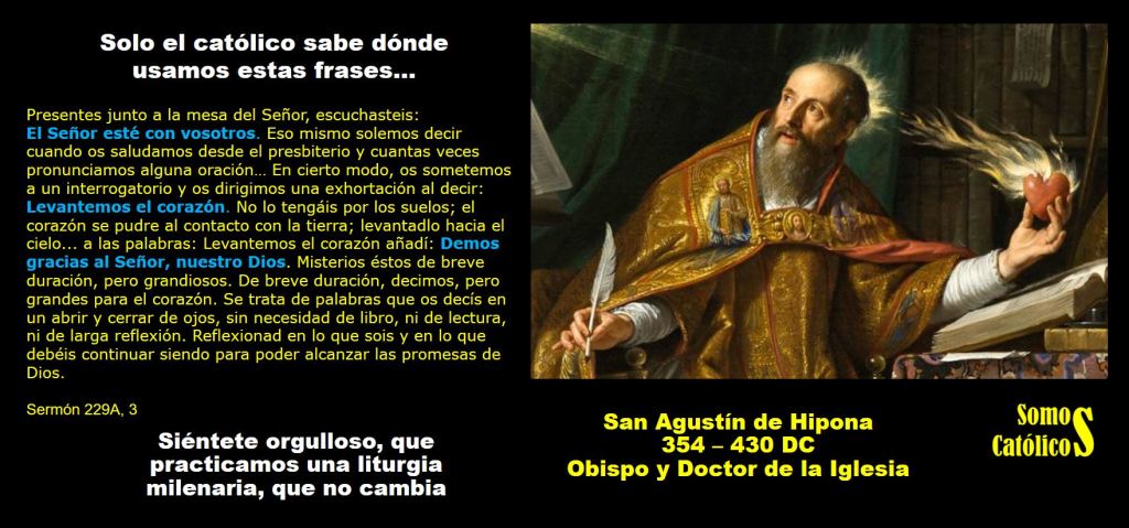Lo que estáis viendo sobre la mesa del Señor, por lo que se refiere a su aspecto exterior… Tal como lo veis, es aún pan y vino; cuando llegue la santificación, ese pan será el cuerpo de Cristo y el vino su sangre.