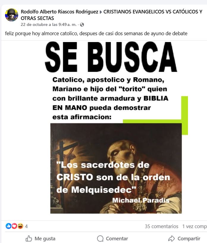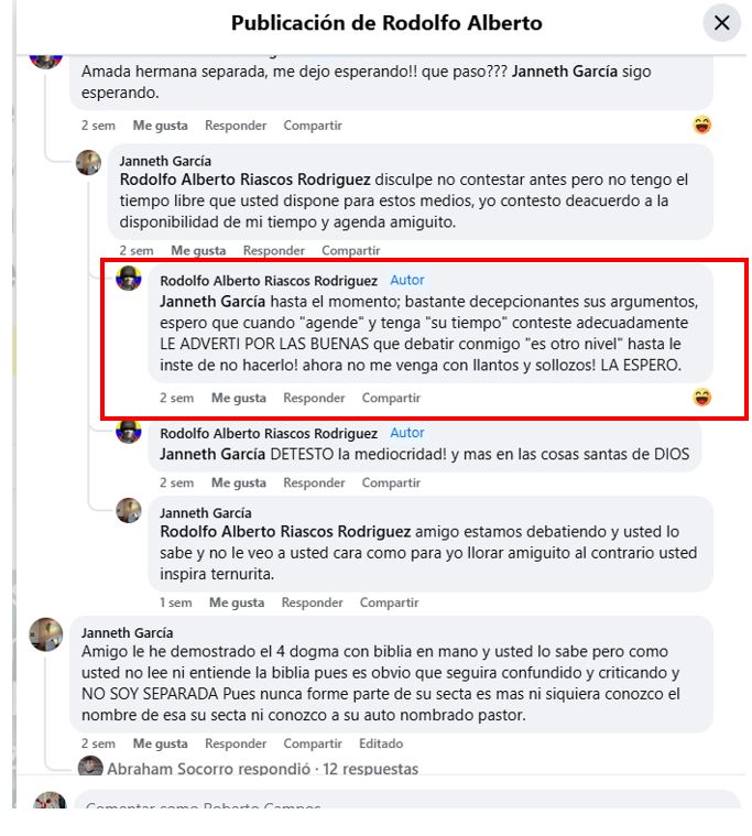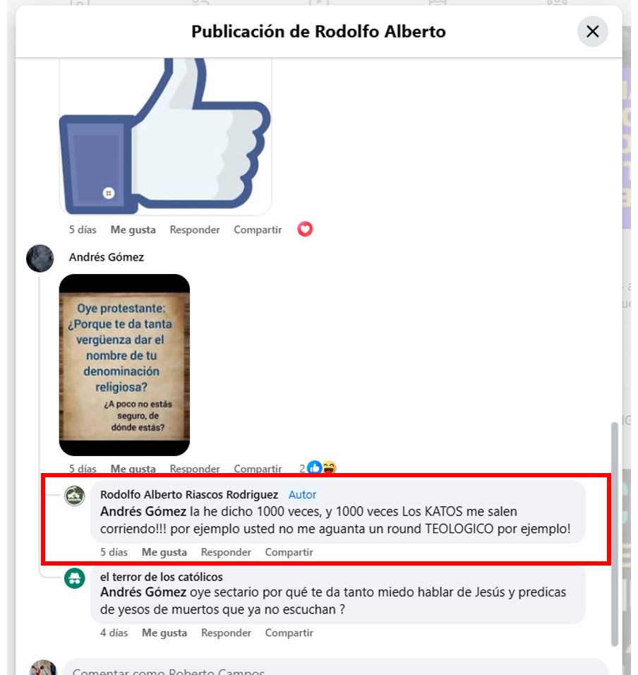 Les comparto algunas imágenes de sus comentarios soberbios y arrogantes, con los cuales se presenta en las páginas protestantes.